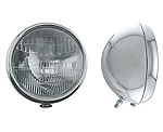 Guide 682-C style headlamps, 12v halogen, finished with a polished stainless steel shell and chrome rim. The guide light has clear lens which lights up amber with 5 LED'S.